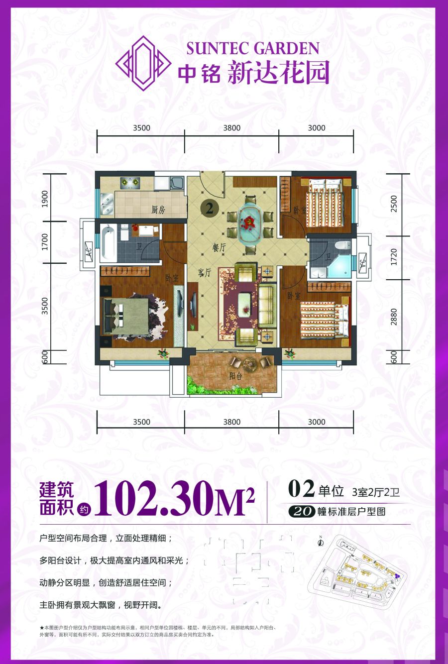 由英伦风格精心打造而成的中铭新达城【爵玥】组团,社区内配备六大英式园林景观,阳光充足,环境优雅;园内并增设各类娱乐运动设施:如高尔夫练习场、儿童娱乐场、网球场、游泳池等。